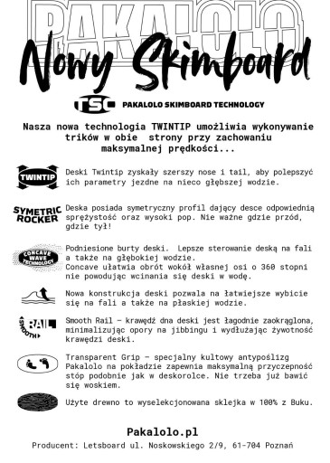 Nowy, Szybszy z większym popem Skimboard Pakalolo: