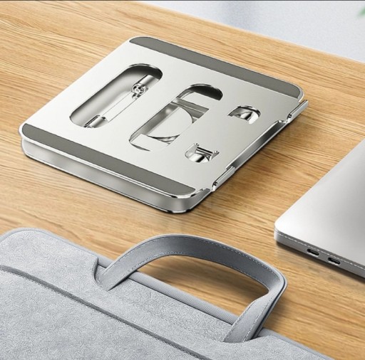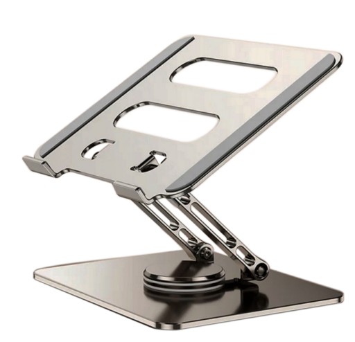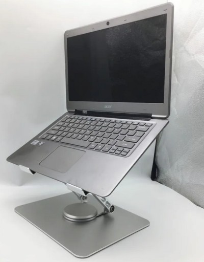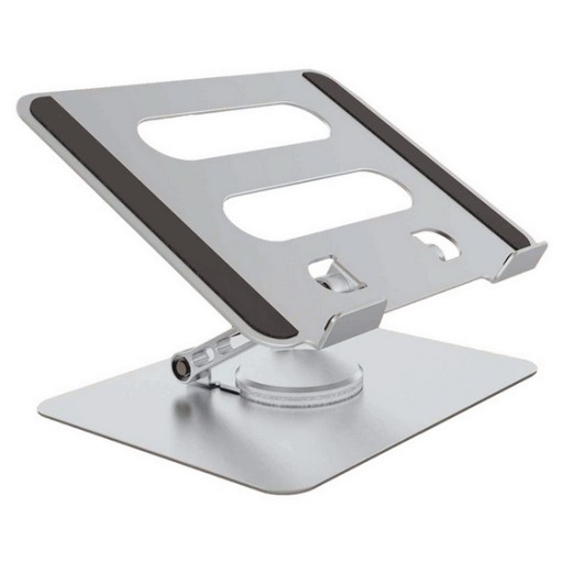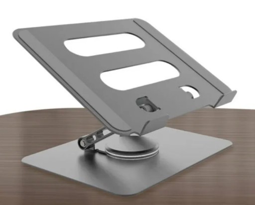 Piękny regulowany, aluminiowy stojak na biurko do laptopów i tabletów, z możliwoścą obrotu o 360 stopni.