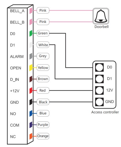 Sterowanie przyciskami dotykowymi, 10 000 zaindeksowanych użytkowników, 300 zaindeksowanych odcisków palca Otwarcie za pomocą karty, PINu lub odcisku palca, Możliwość otwierania z poziomu aplikacji na smartfony, Interfejs Wiegand 26 bit Podświetlenie w kolorze białym Współpraca z przyciskiem wyjścia Wyjście NO/NC