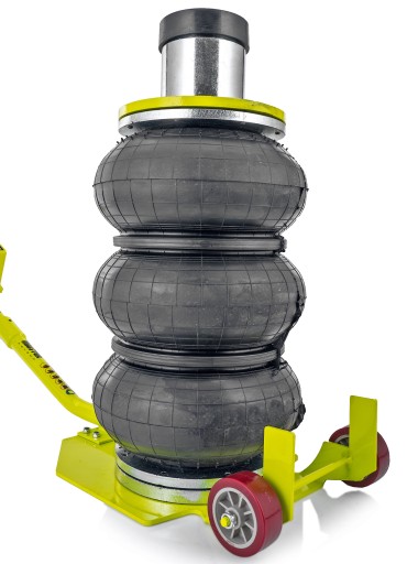Dwa koła i zakrzywiona rączka pozwalają na łatwy i szybki transport podnośnika. Poduszkę podnośnika wykonano ze zbrojonego kauczuku.