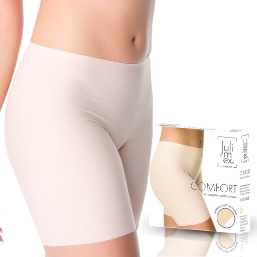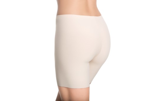 Delikatnie wykończone ku dołowi, niewidoczne pod ubraniem bermudy, nie wciskają się w uda. Elastyczna i miękkia dzianina gwarantuje wygodę i ukrycie niedoskonałości ciała. Dłuższe nogawki zapobiegają bolesnym i nieprzyjemnym obtarciom. Z myślą o higienie kobiet została dodana bawełniana wkładka.
