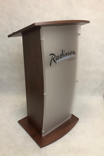Mównica, ambonka, wykonana z płyty meblowej z frontem z pleksi, mównice konferencyjne
