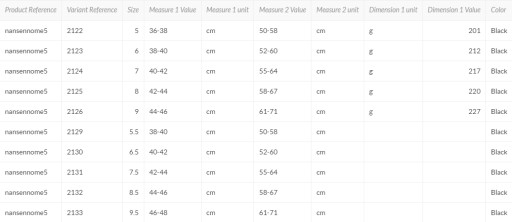 - Kolor: czarny. Niebieska (pełne rozmiary) lub czerwona (połówki rozmiarów) linka końcowa