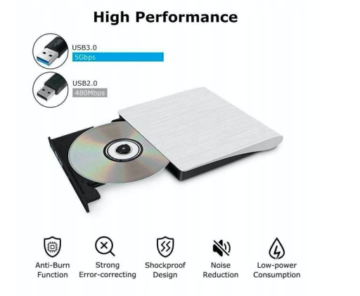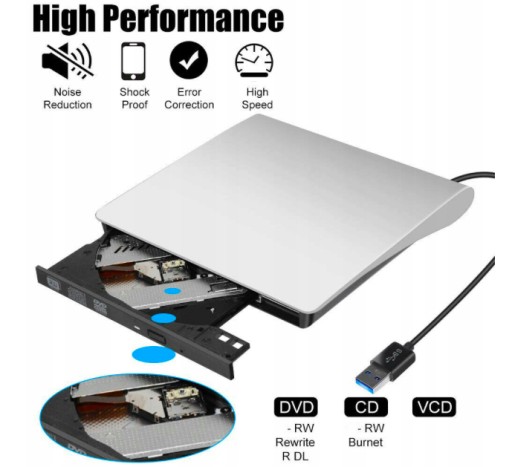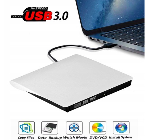 * Zewnętrzny napęd DVD USB 3.0, idealny do odczytu i wielu sesji z płyt CD / DVD.