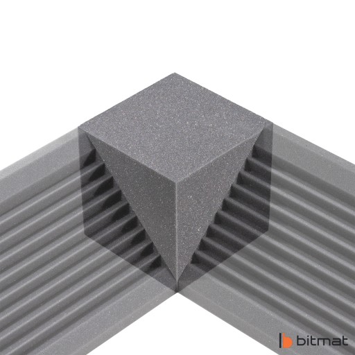 Narożnik akustyczny Bass trap corner 20 cm x 20 cm x 20 cm marki Bitmat to bardzo dobry sposób na poprawę akustyki w pomieszczeniach mieszkalnych, biurowych czy salach prób, a także ochrony przed niechcianymi odbiciami dźwięku. Pianka o strukturze otwarto-komórkowej ma za zadanie pochłaniać i rozpraszać fale dźwiękowe, aby zniwelować echo oraz skrócić czas pogłosu. Poza właściwościami akustycznymi oferuje także atrakcyjny wygląd, który będzie pasował do większości pomieszczeń.