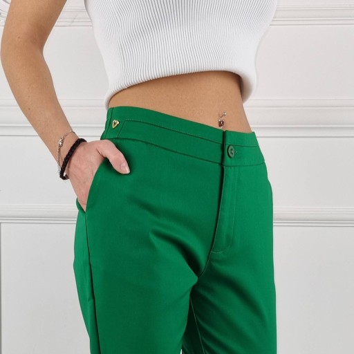Eleganckie spodnie Freesia, cygaretki 7/8, posiadają średni stan. Świetne połączeniu ze szpilkami, dzięki swojej uniwersalności, pasują niemal do każdej stylizacji. Elastyczny materiał podkreśla kobiecą sylwetkę. Podkreśl swoje kobiece kształty! Spraw, by Twój codzienny Look był niepowtarzalny.