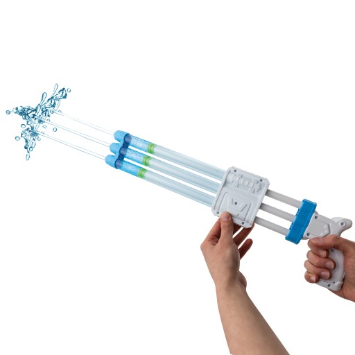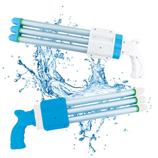 Wykonany z wysokiej jakości tworzywa sztucznego, co gwarantuje długotrwałą zabawę bez obaw o uszkodzenia. Wyposażony w 3 lufy o pojemności 250 ml. Pistolet napełnia się za pomocą rozsunięcia go, a następnie po naciśnięciu woda wystrzela nawet do 10 m.