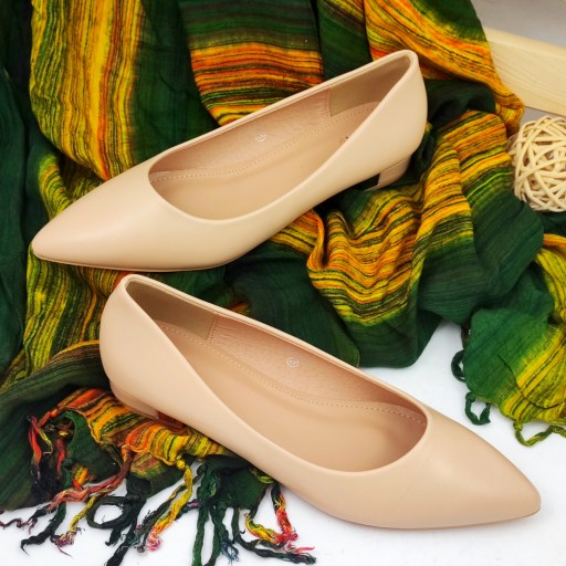 Baleriny damskie z miękkiej skóry ekologicznej na płaskim obcasie. Miękka wkładka, bardzo zgrabny nosek. Klasyczny prosty design, ozdobny obcas.