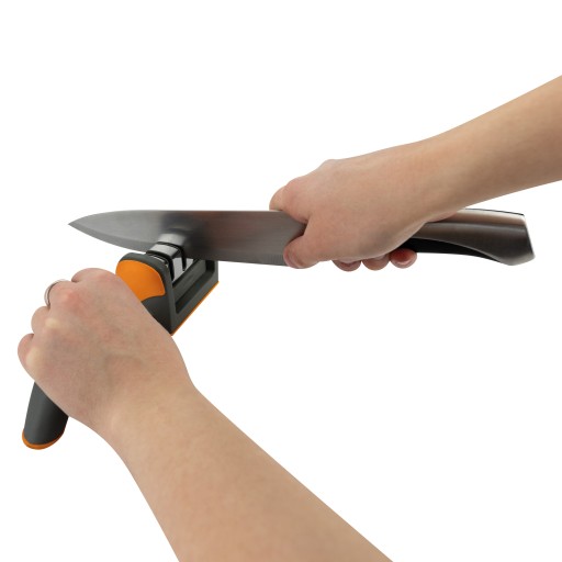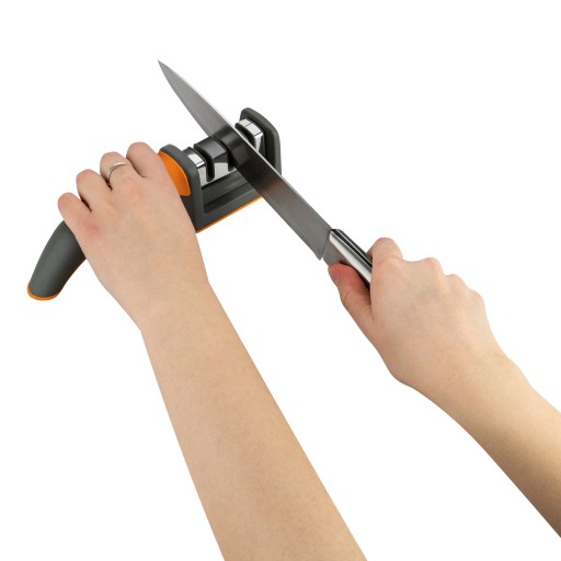 Ostrzałka jest wykonana z wytrzymałych i trwałych materiałów – powłoki ceramicznej, węglików wolframu, kauczuku oraz tworzywa sztucznego, co gwarantuje jej długą żywotność. Jest to także urządzenie bardzo proste w czyszczeniu i utrzymaniu w czystości. Posiada antypoślizgowy uchwyt i powierzchnię, dzięki czemu nie ślizga się podczas pracy – ani w rękach, ani na blacie.