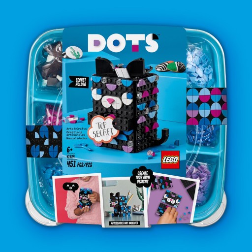 - Zestawy LEGO® DOTS pozwalają dzieciom tworzyć ciekawe dzieła. Budowa świetnego schowka w kształcie kota podsunie im wiele pomysłów i pomoże zyskać większą pewność siebie.