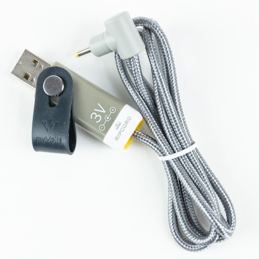 - Kabel zasilający myVolts Ripcord, przekształcający napięcie wejściowe 5V DC portu USB w napięcie wyjściowe 3V i prąd wyjściowy (stały - DC) właściwy dla Sony Minidisc MZ-R900