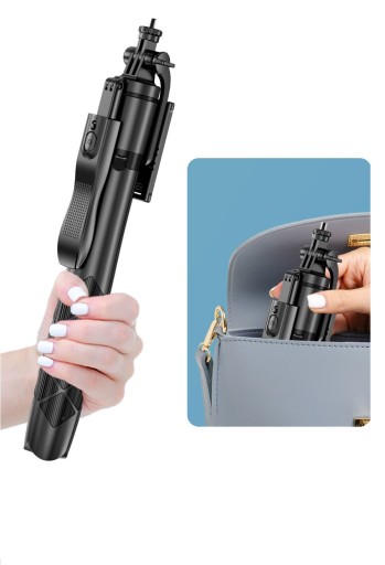 Uchwyt kija selfie jest jednocześnie rozkładanym statywem!