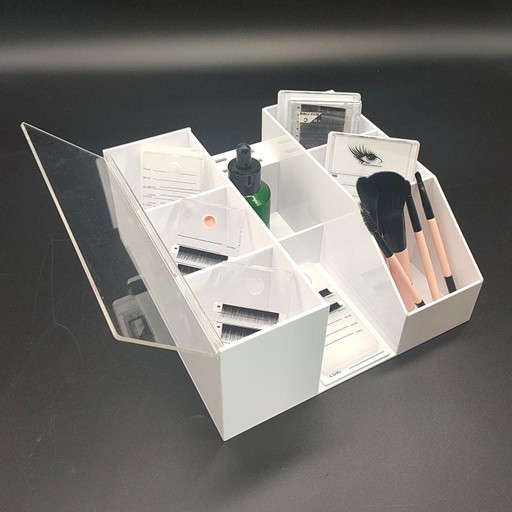 Duża pojemność, przegródki do przechowywania, wygodniejsze do przechowywania i organizowania narzędzi do rzęs lub innego makijażu.