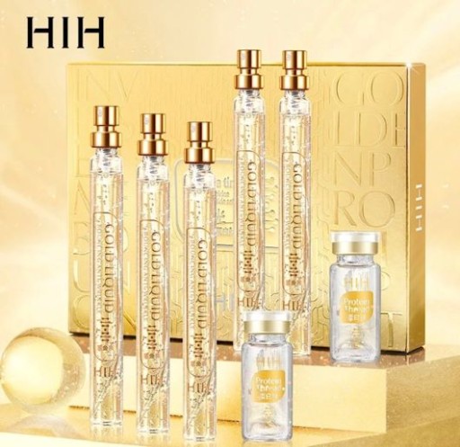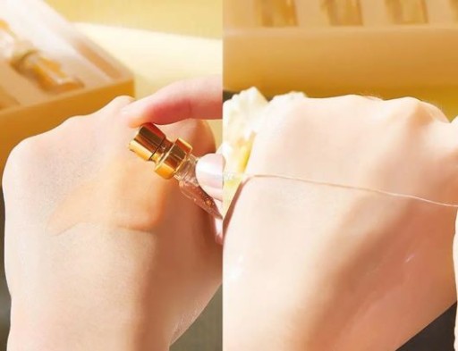 Zastosowanie: po oczyszczeniu nanieść równomiernie złoty płyn na twarz, następnie przyklej linię proteinową razem ze strukturą skóry na twarz i czoło, następnie nanieść złoty płyn na pozycję linii proteinowej i delikatnie wmasować, aż do wchłonięcia.