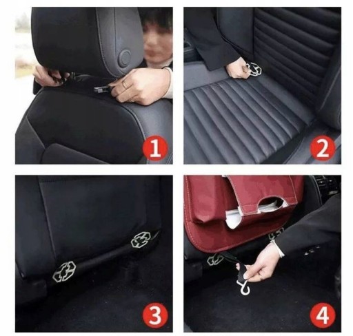✅Montaż jest banalnie prosty i polega na przypięciu torby klamrą wokół zagłówka fotela.