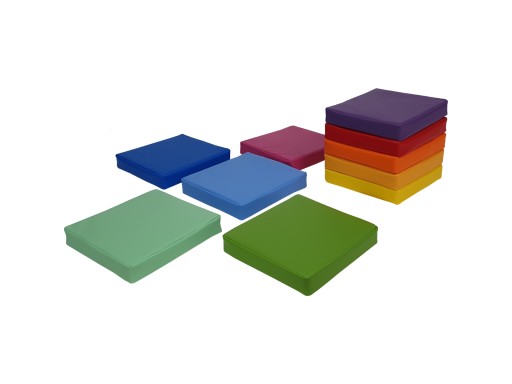 Poduszka kwadratowa to wygodne, kolorowe siedzisko dla dzieci. Poduszka wypełniona jest pianką poliuretanową, która zapewnia wygodę siedzenia podczas zajęć, zabawy lub odpoczynku. Pokrowiec wykonany jest materiału najwyższej jakości z powłoką PCV przeznaczonego dla wyrobów medycznych, dzięki czemu jest bardzo łatwy w czyszczeniu oraz dezynfekcji.