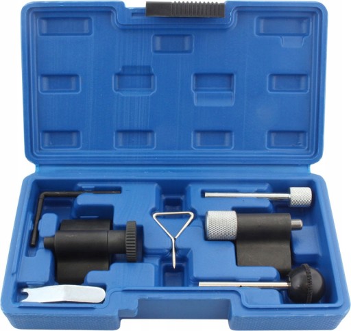 Profesjonalny przyrząd do blokowania kół rozrządu. Zestaw umożliwia unieruchomienie kół zębatych rozrządu w pozycji serwisowej, podczas wymiany paska rozrządu. Specjalny kształt blokad pozwala na precyzyjne ustawienie punktów kontrolnych zapłonu. Blokady unieruchamiają koło zębate rozrządu i wału korbowego oraz koło napinacza paska. Polecane do użytku zawodowego w specjalistycznych serwisach samochodowych. Całość zestawu zapakowana w praktycznej walizkę