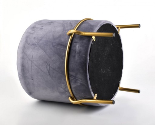 Puf z serii LILY . Nowoczesny w formie puf na finezyjnym stojaku złotym. Sprawdzi się w każdym domu. Puf ma wielorakie zastosowanie, będzie się pięknie prezentował w przedpokoju, ale także jak stolik pomocniczy bądź nocny. Połączenie kolorystyczne sprawia, że puf idealnie wpasowuje się w obecnie obowiązujące trendy. Wymiary: Śr.:42cm H: 46cm Max udźwig: 100 kg