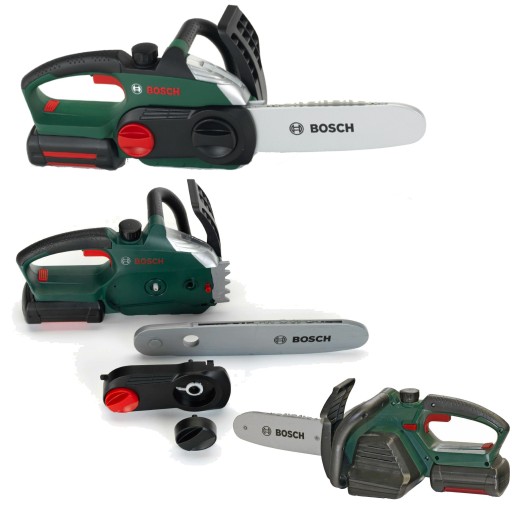 Ta bezprzewodowa, działająca na baterie piła jest w kolorze ciemnej zieleni z czarnymi, srebrnymi i czerwonymi elementami, opatrzona czerwonym logiem Bosch. Wykonana solidnie i z dbałością o szczegóły, wiernie naśladuje prawdziwe urządzenie. Została wyposażona w: