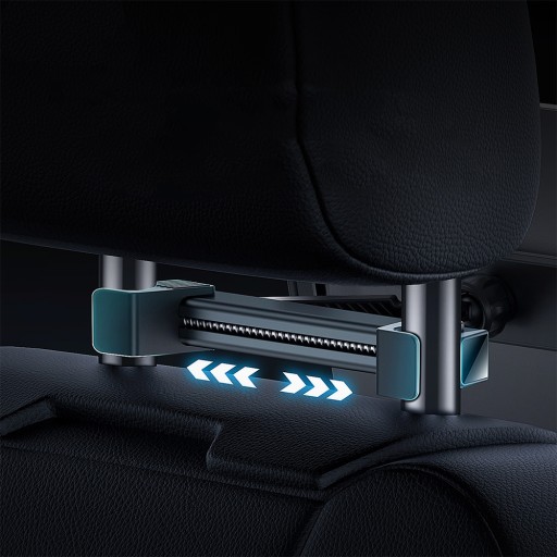 Uchwyt został wyposażony w specjalną szynę, która umożliwia jego płynne wsuwanie i wysuwanie. Twój pasażer może więc ustawić tablet bliżej zagłówka lub na przykład przysunąć go do siebie. Da się też bez problemu złożyć akcesorium, co ułatwia jego przechowywanie – po złożeniu będzie zajmować znacznie mniej przestrzeni w samochodzie. Co więcej, wbudowany przegub kulowy pozwala obracać zamontowane na uchwycie urządzenie w zakresie 360°. Można zatem ustawić je zarówno pionowo, jak i poziomo.