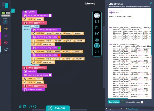 Tworząc programy blokowe możesz podejrzeć kod w Pythonie i uczyć się programowania.