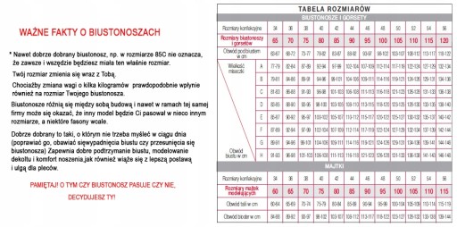 Zapinany z tyłu na trzy haftki z regulacją szerokości zapięcia