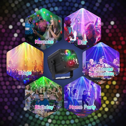 【Nowo ulepszone efekty wizualne 3D】 Oświetlenie imprezowe wykorzystuje efekty 3D, 240 różnych efektów projekcji jest połączonych i 7-kolorowe tła LED (czerwony, zielony, niebieski, czerwony, zielony, czerwony i niebieski), niebiesko-zielony, czerwono-zielony- niebieski) i 2 kombinacje wiązek (czerwony, zielony), łącząc multi-efekty, aby stworzyć bardziej żywą i dynamiczną atmosferę.