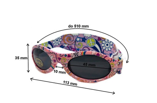 - Specjalny kształt paska (szerszy z tyłu) gwarantuje, że okularki nawet biegającemu po plaży maluchowi okularki nie będą spadać.