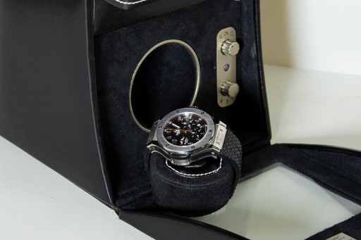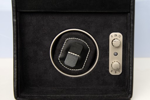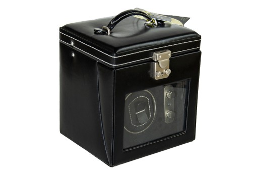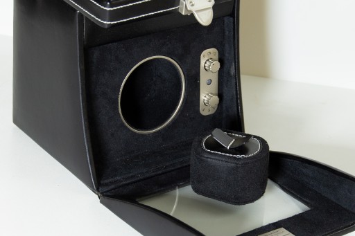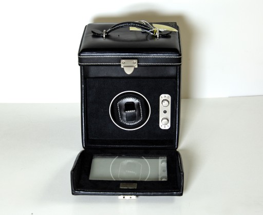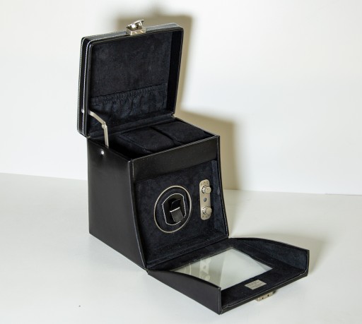 Luksusowy rotomat na 1 zegarek z dodatkową półką i kieszonka na 2 zegarki i inne dodatki. Bardzo dobrej jakości skóra naturalna w kolorze czarnym. Bardzo dobra jakość i technika znana m.in. z rotomatow Wolf Heritage Single Storage.