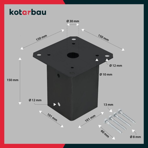 - Wspornik słupka pasuje tam, gdzie statyka odgrywa ważną rolę. Kotwa przeznaczona jest do przykręcania.