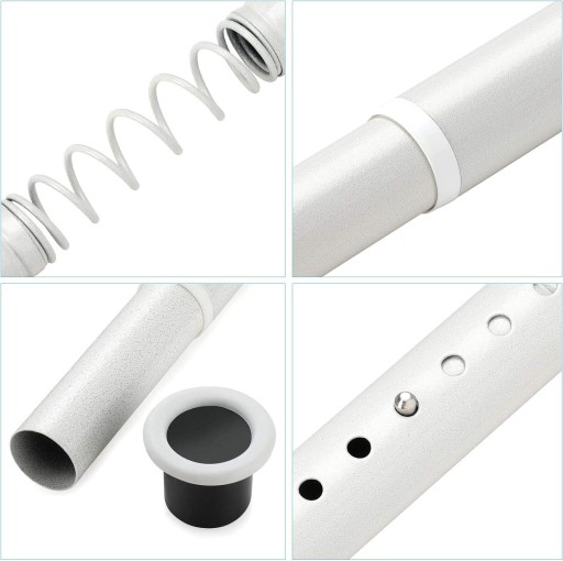 - Materiał: Ten wielofunkcyjny drążek teleskopowy jest wykonany ze stali nierdzewnej 304 z dużą sprężyną w środku. Ten drążek teleskopowy o średnicy 3,2 mm charakteryzuje się dużą wytrzymałością i nośnością do 40 kg.