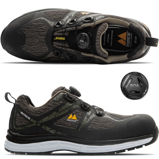 Nowa seria butów szwedzkiej firmy Monitor M-rebound Recovery (M-RR). Opracowana zupełnie nowa technologia, która stawia na głowie podstawy budowy obuwia roboczego, sprawiając, że długi dzień na twardym podłożu staje się przyjemnością, a nie wyzwaniem. Materiał amortyzujący w podeszwie nazywa się Rebound i jest opracowany w całkowicie nowej technologii, dzięki której podeszwa ma lepszą amortyzację, stabilność oraz znacznie dłuższą żywotność i trwałość niż porównywalne materiały podeszw istniejących na rynku. Cholewka buta Stone wykonana jest z materiału z mikrofibry z dużymi otworami dla maksymalnej oddychalności. Zastosowana wkładka z poliuretanu zapewnia rewelacyjny komfort i posiada właściwości ESD. Dodatkowym atutem obuwia jest zastosowany szeroki kompozytowy podnosek, oraz materiał EGS tłumiący drgania w pięcie. But posiada również, objęty dożywotnią gwarancją, system wiązania BOA