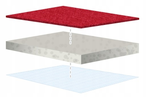 TKANINA TAPICERSKA (zastosowana na pasie środkowym) - materiał w czarnym kolorze, podbity grubą pianką tapicerską, posiada wysoką odporność na ścieranie, charakteryzuje się wysoką żywotnością oraz łatwością utrzymania w czystości (materiał czyści się wilgotną szmatką z mikrofibry - najlepiej zaraz po zabrudzeniu). Materiał nie farbuje, nie powoduje reakcji alergicznych oraz jest bezpieczny dla dzieci.