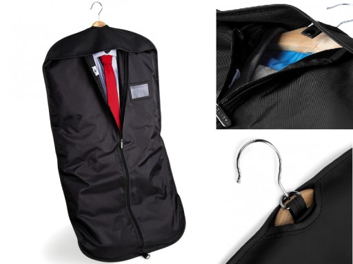 Wysokiej jakości składany pokrowiec do przechowywania garnituru lub innych ubrań wykonany z mocnego, odpornego na przetarcia i zabrudzenia materiału.