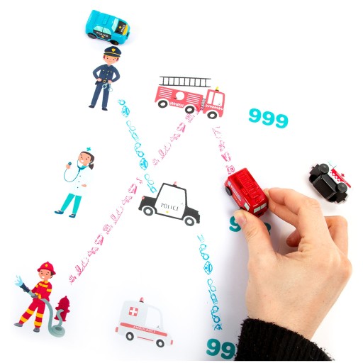 - Niezwykle kreatywna pomoc dydaktyczna, na przykład podczas nauki o pojazdach i numerach alarmowych.