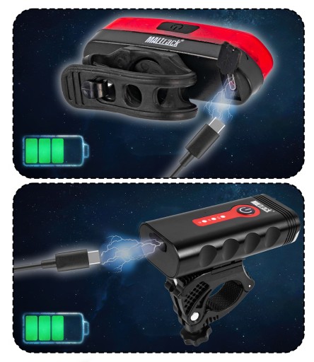 Akumulator 4400mAh i 650mAh - Lampki wyposażone są w pojemne akumulatory, które pozwalają na długotrwałe korzystanie. Nie musisz martwić się o częste ładowanie, a jednocześnie masz pewność, że będziesz miał światło przez dłuższy czas.