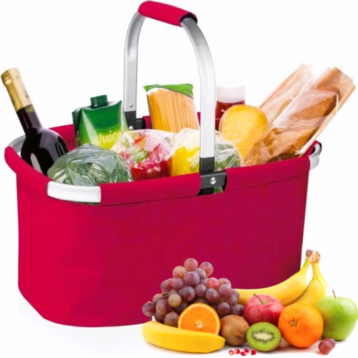 Składany koszyk na zakupy o pojemności 23 l, nośności 20 kg z wysokiej jakości syntetycznej tkaniny, z wytrzymałym aluminiowym profilem.