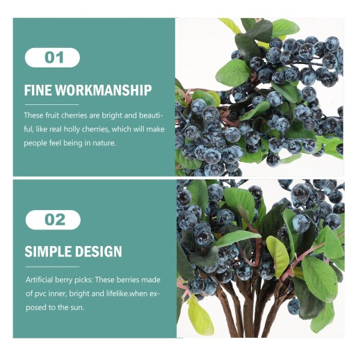 Wykonane z najwyższej jakości tkaniny i wewnętrznego materiału pcv, jagody są realistyczne i wykwintne. Dzięki realistycznemu wyglądowi jest to ozdoba świąteczna, która dodaje zabawnej i świątecznej atmosfery. Nadaje się na imprezę, przyjęcie urodzinowe, imprezę świąteczną, wystrój domu itp.