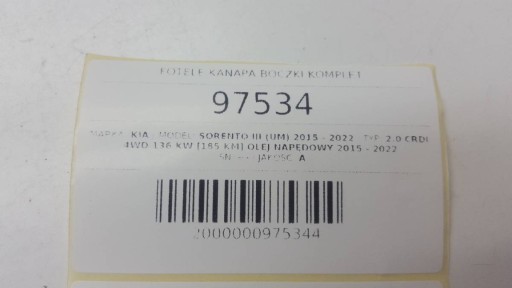 Zastosowanie: KIA SORENTO III (UM) 2015 - 2022 2.0 CRDI 4WD 136 kW [185 KM] olej napędowy 2015 - 2022