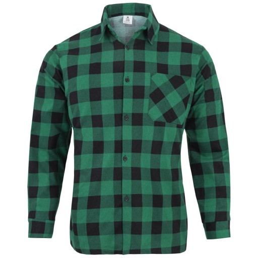 Komfortowa i ponadczasowa robocza koszula flanelowa z kieszonką. Klasyczna czarno-zielona krata.