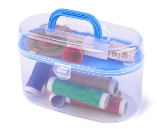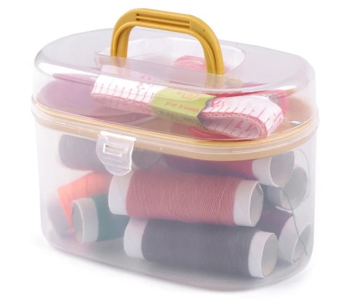 Zawiera wszystkie podstawowe narzędzia, których potrzebujesz do szycia lub naprawy ubrań. Pudełko, w którym znajdują się przybory, ma wewnątrz zdejmowane piętro. Idealny pomocnik przy szyciu dla krawcowej. Nadaje się w podróż bądź do domu !