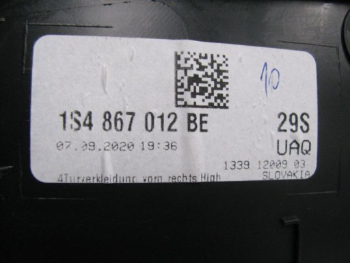 TAPICERKA BOCZEK DRZWI PRAWY PRZÓD DO VW UP LIFT 2020 WERSJA 5-D