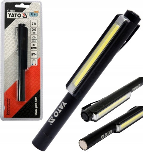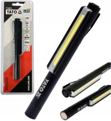 Aluminiowa latarka inspekcyjna YATO z 3 trybami pracy, w tym czerwonym światłem ostrzegawczym. Dioda COB zapewnia mocne, rozproszone światło 400lm. Dodatkowym atutem jest magnetyczna podstawa oraz metalowy klips.