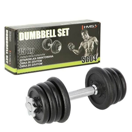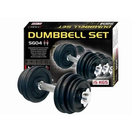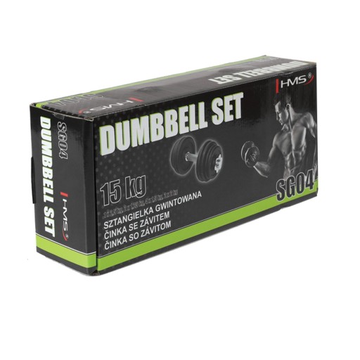 Wykonana jest ze stali niklowanej. Talerze w zestawie są żeliwne, hantle posiadają ryflowany uchwyt, dzięki czemu nie wyślizguję się w trakcie ćwiczeń, gwintowane sztangielki i zaciski gwarantują równomierny docisk ciężarów.