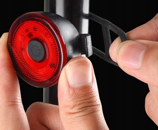- Lampka wraz z elastycznym gumowym mocowaniem - montaż bez użycia narzędzi.