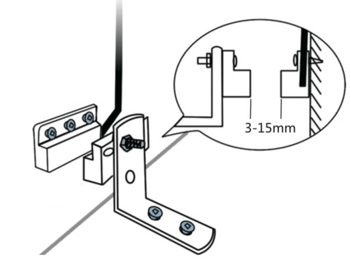 - Czujnik i jego przeciwcześć mogą być od siebie oddalone o maksymalnie około 15 mm, aby sygnał do sterownika był poprawnie przekazywany.