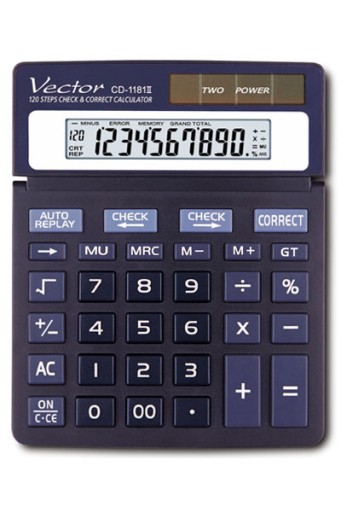 KALKULATOR BIUROWY VECTOR KAV CD-1181II, 10-CYFROWY, 120X151MM, CZARNY