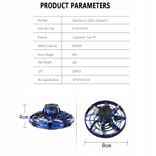 Typ baterii: 200 mAh litowo-polimerowa bateria wbudowana w latającą piłkę