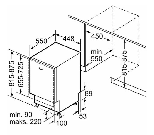 - Wymagana przestrzeń instalacyjna (WxSxG): 585-595 x 560-568 x 550