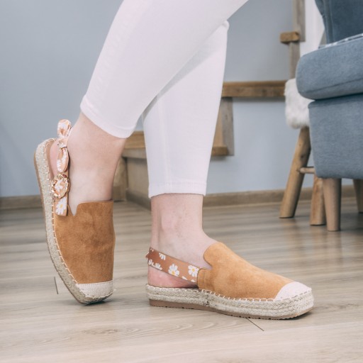 Camelowe espadryle Anne to eleganckie buty wykonane z ekologicznego zamszu. Mają płaski, trzycentymetrowy obcas, który zapewnia wygodę i stabilność podczas noszenia. Kolor camelowy nadaje im klasycznego, ponadczasowego charakteru, który idealnie komponuje się z różnymi stylizacjami.